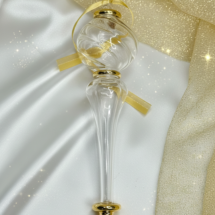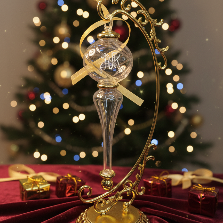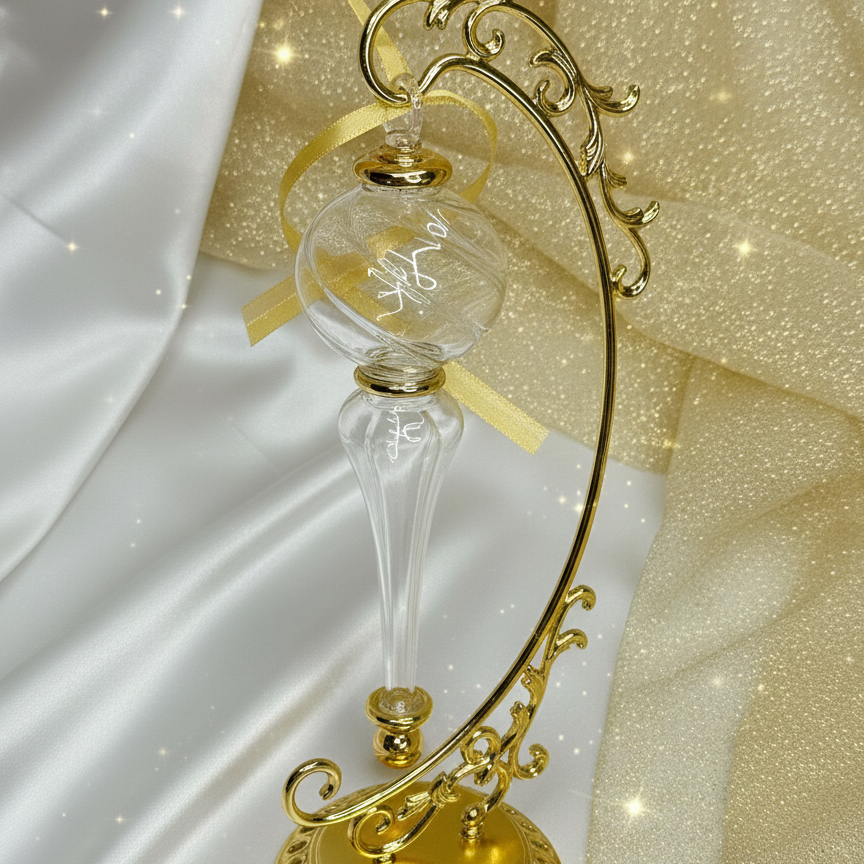 Handcrafted Crystal Globe ornament.Made out of Egyptian hand blow glass with a 14K gold accents.