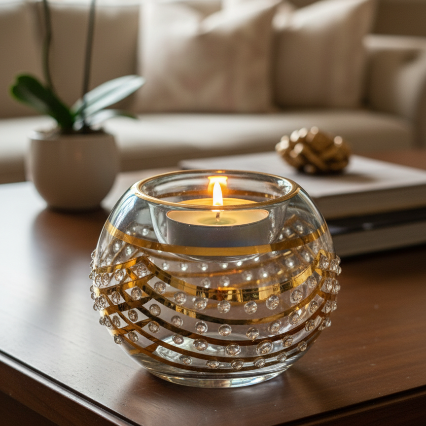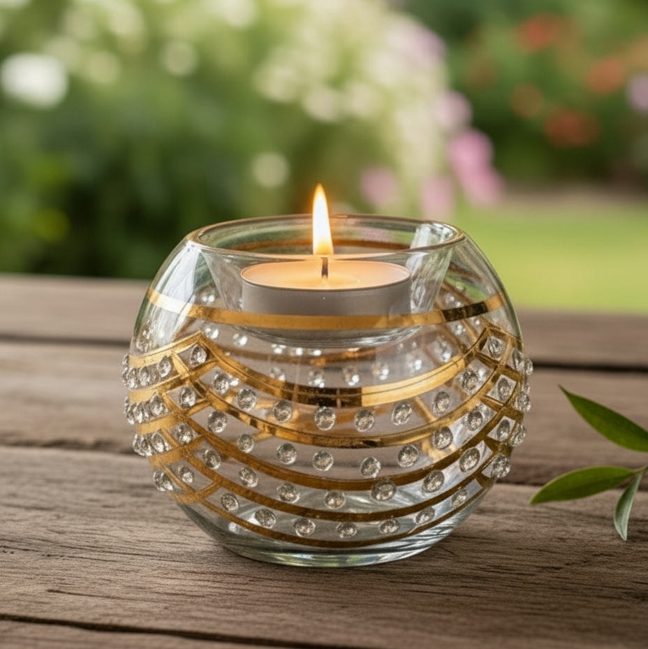 Crafted by skilled artisans using traditional hand-blowing techniques, this Egyptian glass tea light holder showcases a captivating blue hue with an intricate etched swirl pattern. Each piece is individually formed, ensuring no two are identical. When lit, the hand-blown glass diffuses light beautifully, creating a warm, atmospheric glow that enhances any room's ambiance. Its compact, versatile design makes it ideal for bedside tables, shelving, or dining surfaces. Built to withstand daily use while maintaining its aesthetic appeal, this artisanal piece brings both sophistication and authentic craftsmanship to your home.