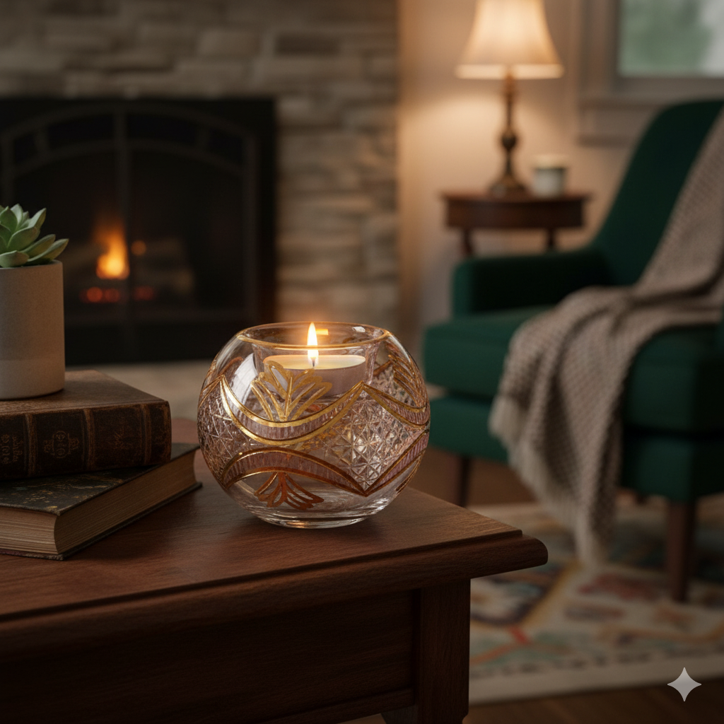 Crafted by Egyptian artisans, this hand-blown glass tea light holder marries traditional glassmaking techniques with contemporary design. The pink etched surface features intricate patterns that catch and diffuse light beautifully, creating a warm, atmospheric glow ideal for intimate spaces. Its compact form makes it equally at home on a bedside table, shelf, or dining surface. Each piece is individually made, ensuring subtle variations that speak to its authentic handcrafted origins. Built to withstand daily use while maintaining its visual appeal, this holder transforms any room with understated elegance and soft illumination.