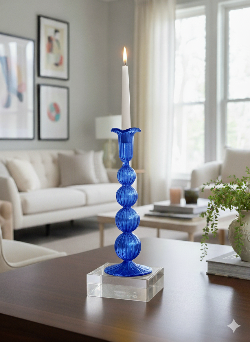 Crafted with precision and care, our Hand-Blown Glass Candle Holder showcases exquisite artistry.
