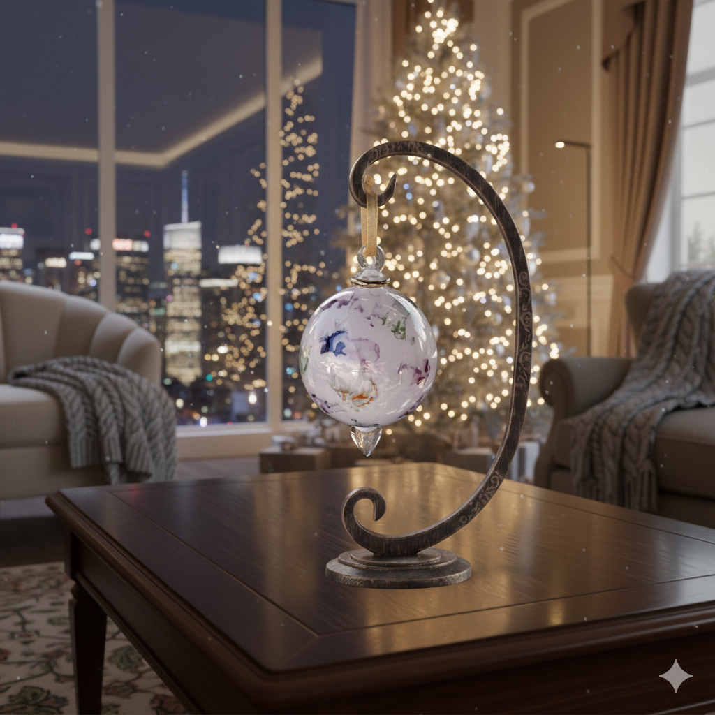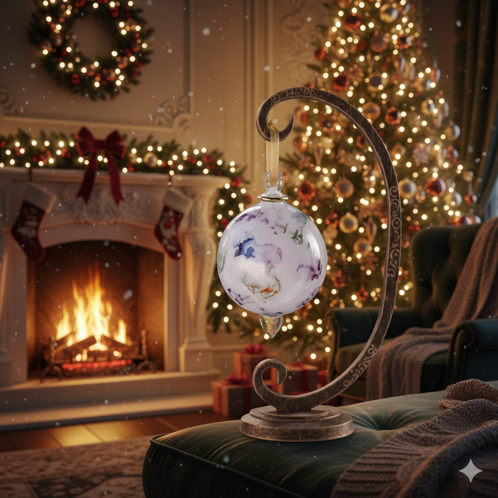 Each of these hand-blown glass ornaments represents authentic Egyptian craftsmanship, shaped by artisans who honor generations of glassmaking tradition. The vibrant, multi-colored design catches holiday light beautifully, casting warm reflections throughout your space. Finished with 14k gold accents, the piece balances elegance with cultural authenticity. As with all hand-crafted art, minor variations and subtle imperfections are inherent to the process—a signature of genuine artisanal work. The ornament's appearance shifts subtly with changing light, revealing new dimensions of color and depth. A meaningful addition to any collection, this ornament transcends seasonal decoration to become a lasting expression of artistic heritage.