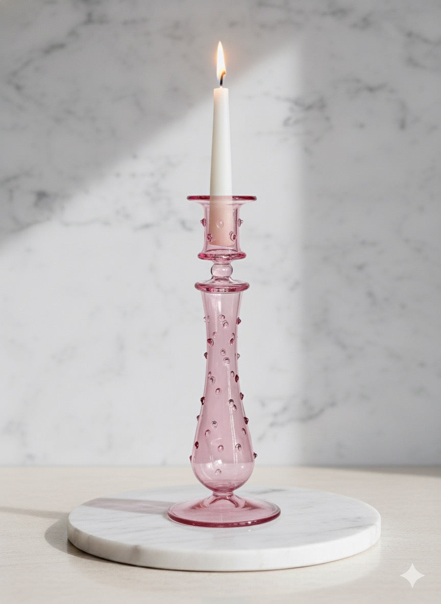 Made out of handblown glass, our hand crafted candle stick featuring our Curved Teardrop w/ Dots Design comes in 6 different colors! Perfect for your elegant table setting or any occasion. Mix and match colors to suit your taste.