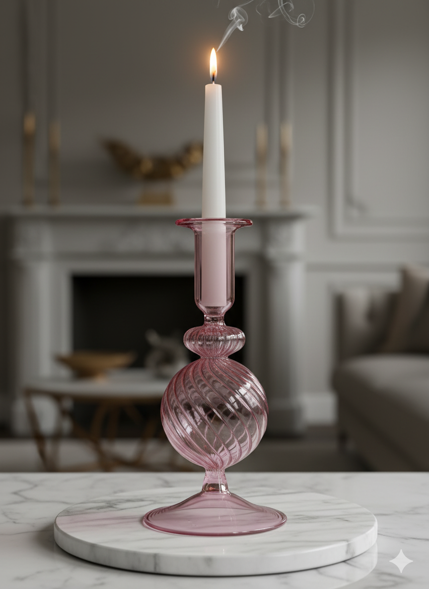 Made out of handblown glass, our hand crafted candle stick featuring our Spiral Swirl Glass comes in 6 different colors! Perfect for your elegant table setting or any occasion. Mix and match colors to suit your taste.