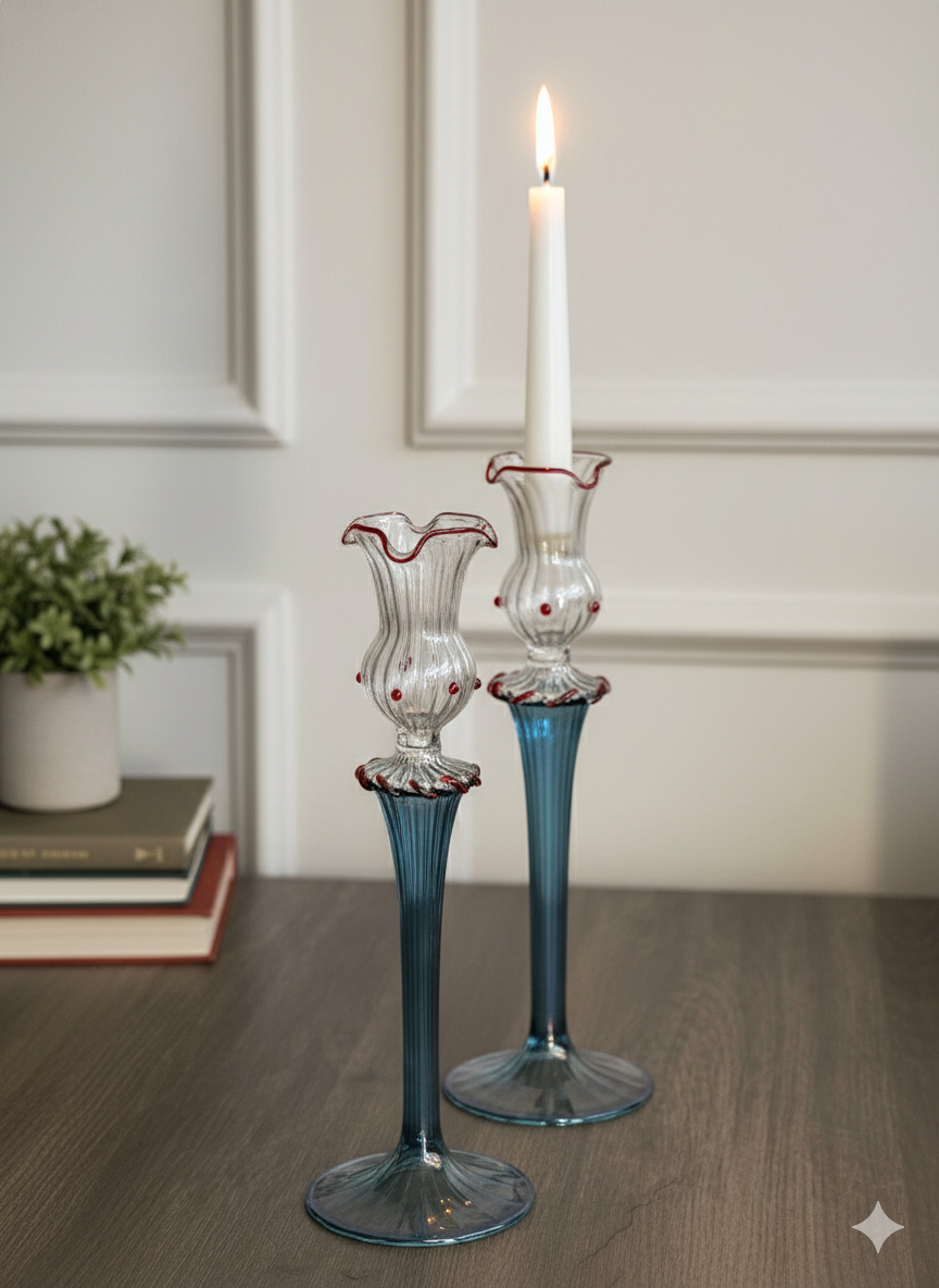 Made out of handblown glass, our hand crafted candle stick featuring our Vintage Lanky Swirl Glass comes in 2 different colors! Perfect for your elegant table setting or any occasion. Mix and match colors to suit your taste.